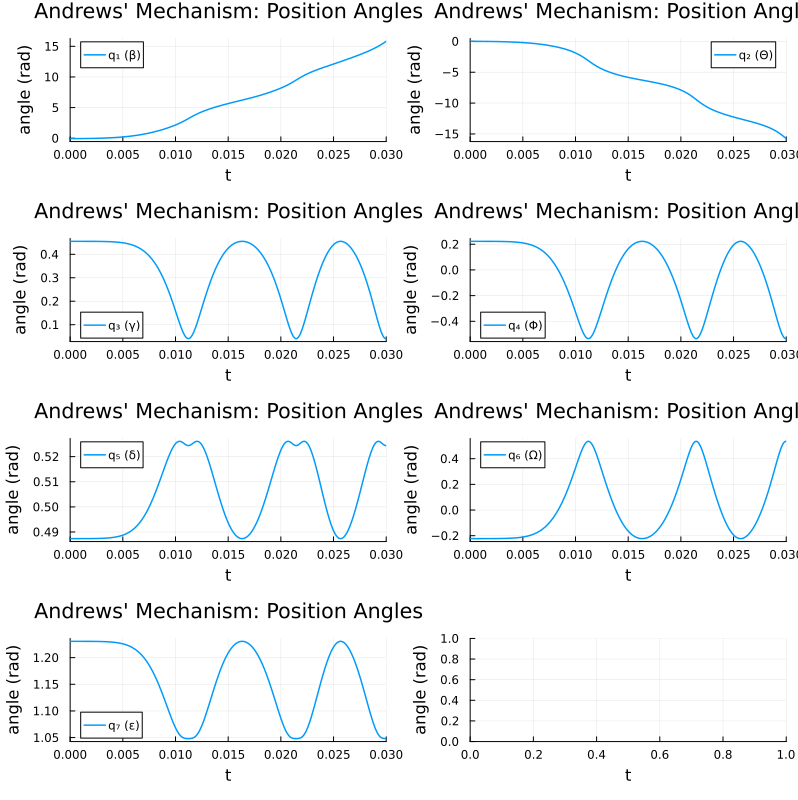 # Positions q (angles of 7 rigid bodies: β, Θ, γ, Φ, δ, Ω, ε)