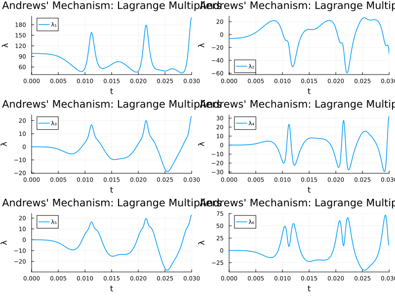 println("Initial multipliers λ₀ = ", y0[22:27])Initial positions q₀ = [-0.06171389001427645, 0.0, 0.45527981916307037, 0.2