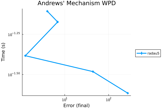 Andrews' Squeezing Mechanism DAE Work-Precision Diagrams