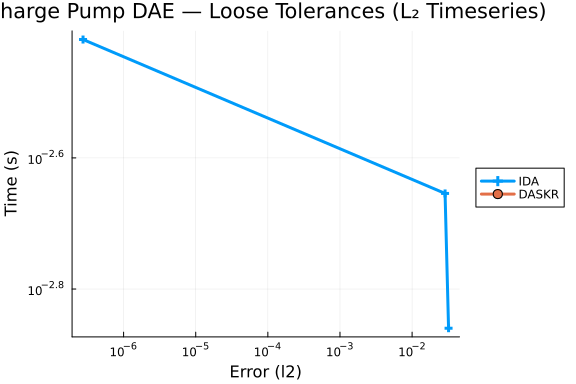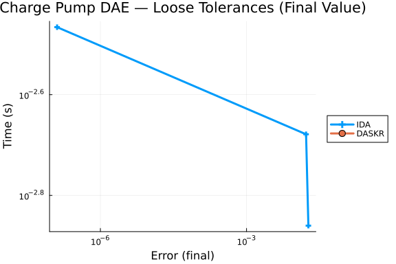 Charge Pump Differential-Algebraic Equation (DAE) Work-Precision Diagrams