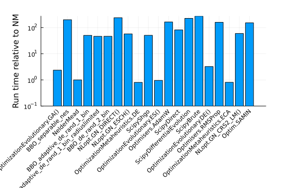 labels, runtimes, xrotation = :45, xticks = :all, ylabel = "Run time relative to NM",