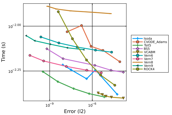 wp = WorkPrecisionSet(oprob, abstols, reltols, setups; error_estimate = :l2,