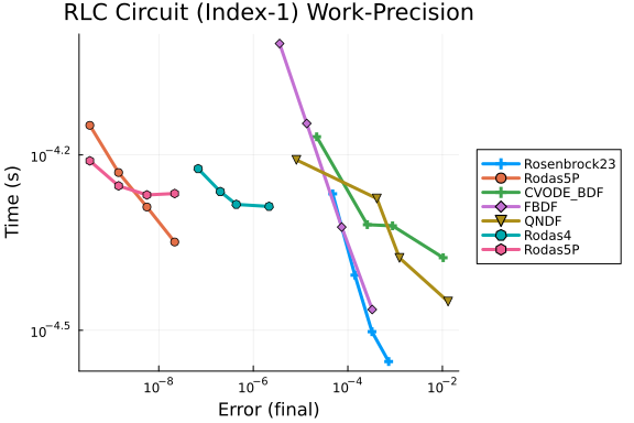 Linear Differential-Algebraic Equation (DAE) Work-Precision Diagrams