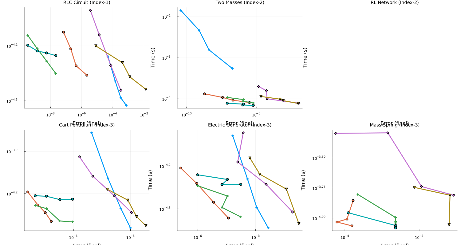 - Index-3 DAEs: Cart Pendulum, Electric Generator, Damped Mass-Spring System