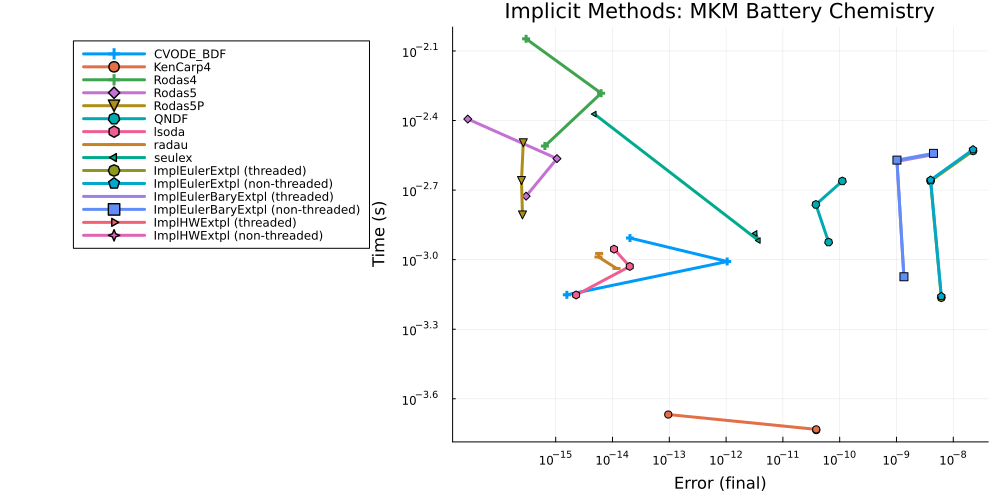 Microkinetic Model (MKM) Battery Chemistry Work-Precision Diagrams