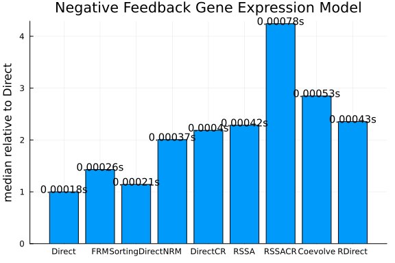 SciMLBenchmarks.weave_file("benchmarks/Jumps","NegFeedback_GeneExpr.jmd")