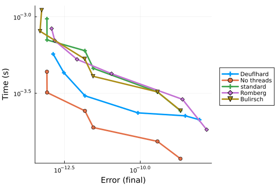solnames = ["Deuflhard","No threads","standard","Romberg","Bulirsch"]