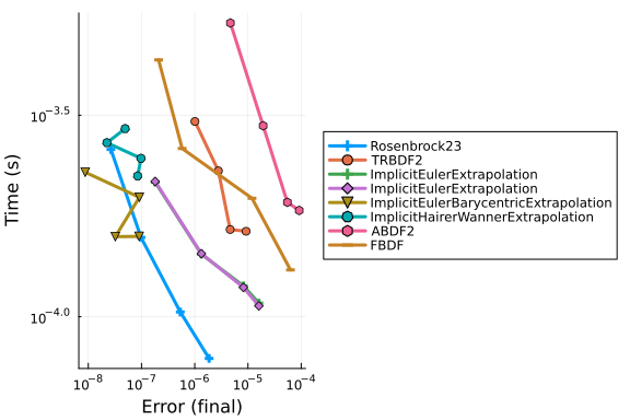 using OrdinaryDiffEq, DiffEqDevTools, Sundials, ParameterizedFunctions, Plots, ODEInterfaceDiffEq, LSODA, LinearSolve