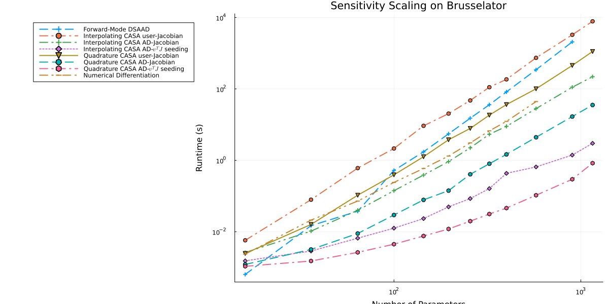 From the paper A Comparison of Automatic Differentiation and Continuous Sensitivity Analysis for Derivatives of Differential Equation Solutions
