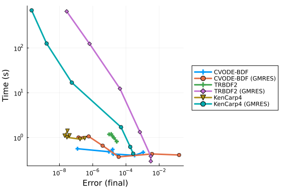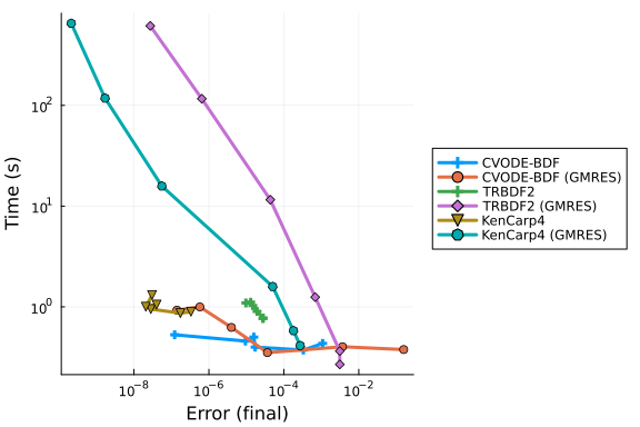 using OrdinaryDiffEq, ODEInterfaceDiffEq, Sundials, DiffEqDevTools, LSODA, LinearSolve