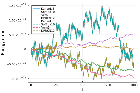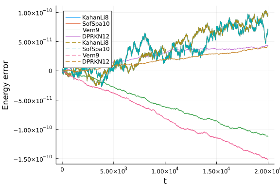 println("KahanLi8 max energy error:\t\t\t$(maximum(abs_energy_err(sol2)))\tin\t$(length(sol2.u))\tsteps.")