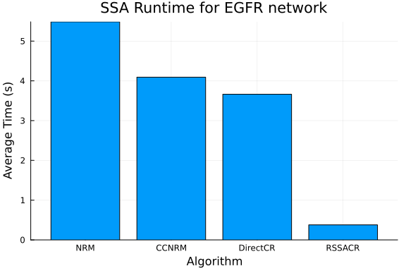 endbenchmark_and_bar_plot (generic function with 1 method)Now we benchmark the EGFR network on the four algorithms and plot the results.
