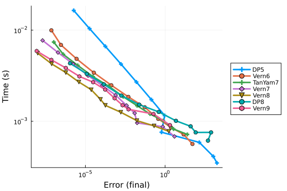 wp = WorkPrecisionSet(prob,abstols,reltols,setups;error_estimate=:L2,dense_errors=true,numruns=100)