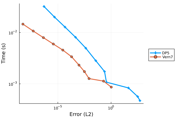 Now let's see how OrdinaryDiffEq.jl fairs with some higher order algorithms: