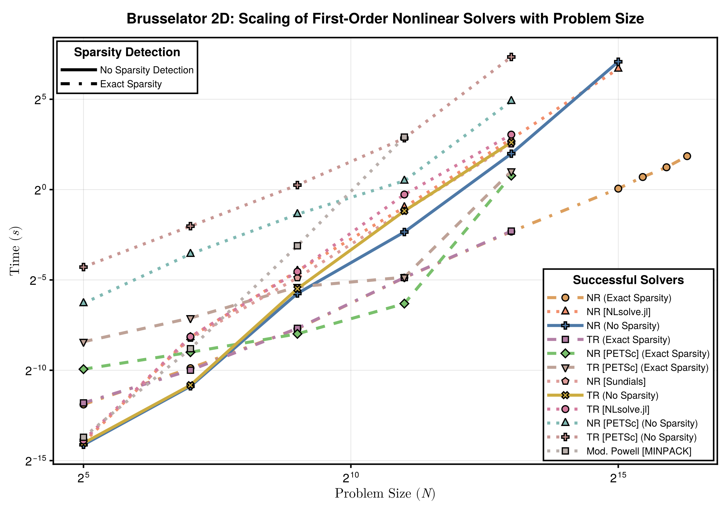 using NonlinearSolve, LinearAlgebra, SparseArrays, DiffEqDevTools,