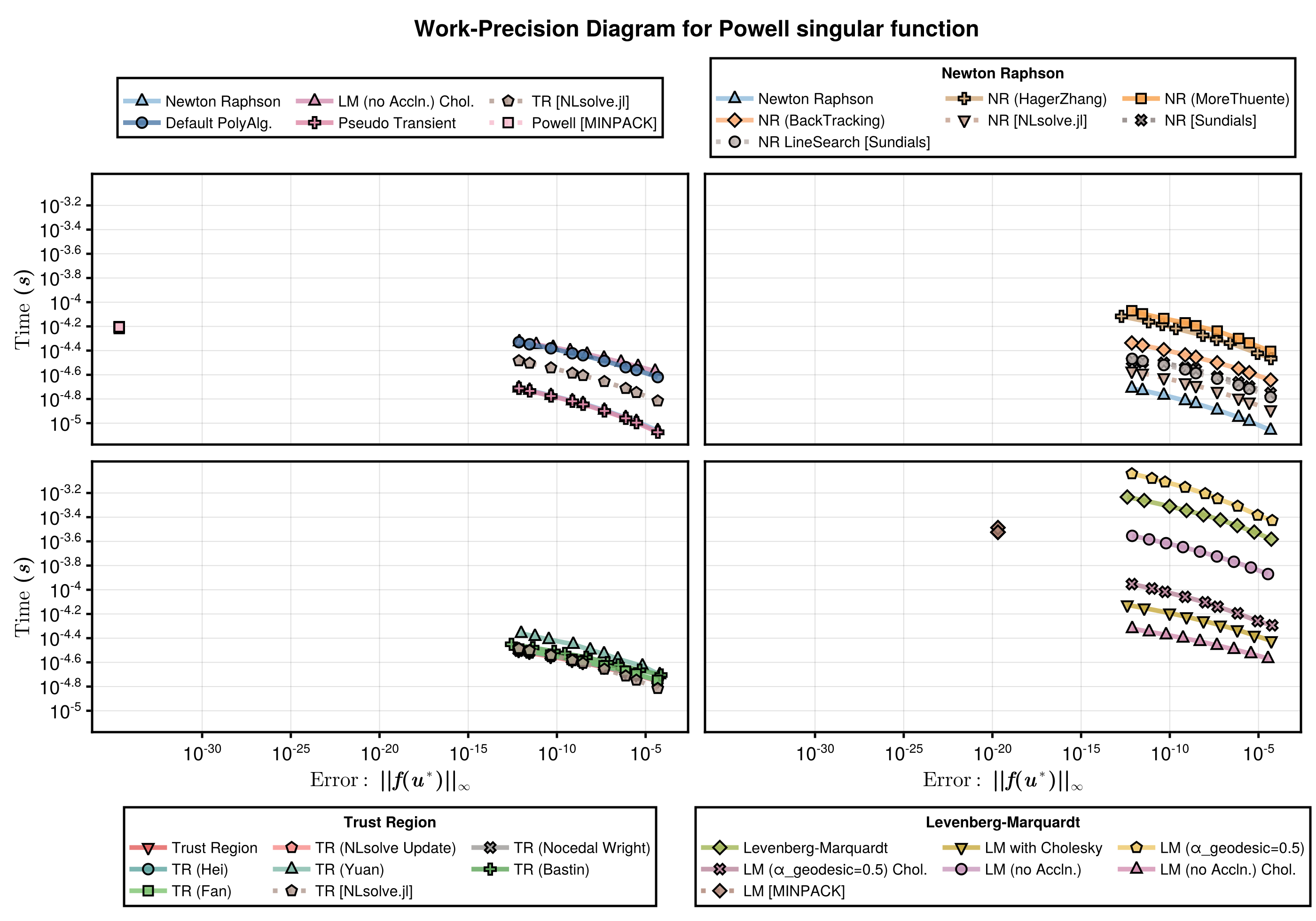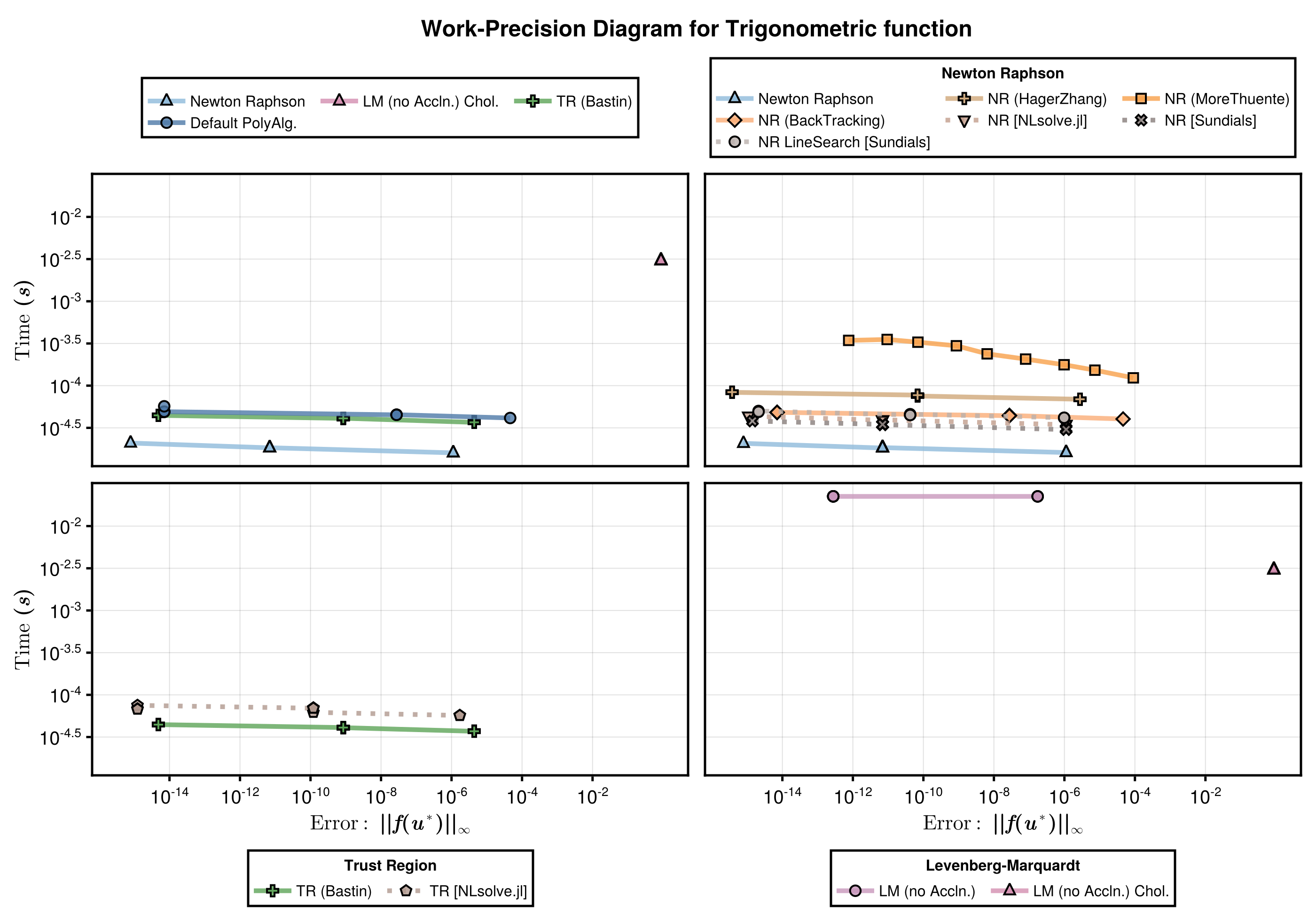 NewtonRaphson()). - NonlinearSolve.jl's Trust Region method (