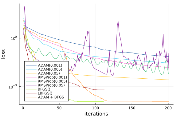 opt8 = OptimizationOptimJL.LBFGS()Optim.LBFGS{Nothing, LineSearches.InitialStatic{Float64}, LineSearches.Hage