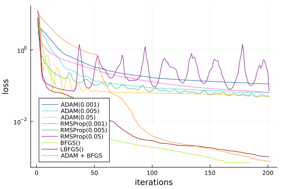 endsolve (generic function with 1 method)opt1 = Optimisers.ADAM()