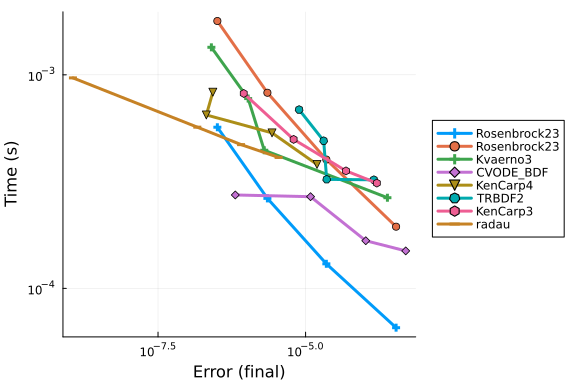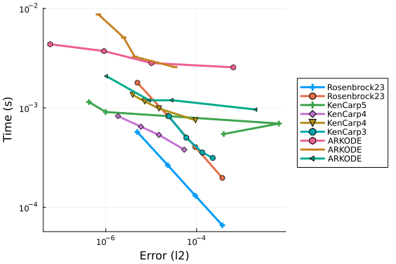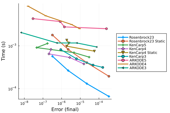 names = ["Rosenbrock23" "Rosenbrock23 Static" "KenCarp5" "KenCarp4" "KenCarp4 Static" "KenCarp3" "ARKODE5" "ARKODE4" "ARKODE3"]